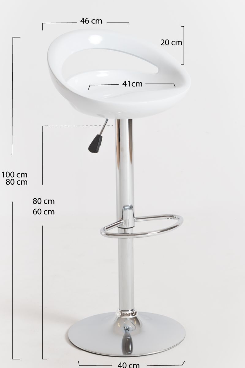 La pièce est soutenue sur une structure en acier réformé, avec finition chromée et fonction ergonomique. Grâce au levier manuel, vous pouvez faire varier la hauteur de l élément entre 80 et 100 cm. Cela lui permet d être combiné avec de nombreux types de table différents.